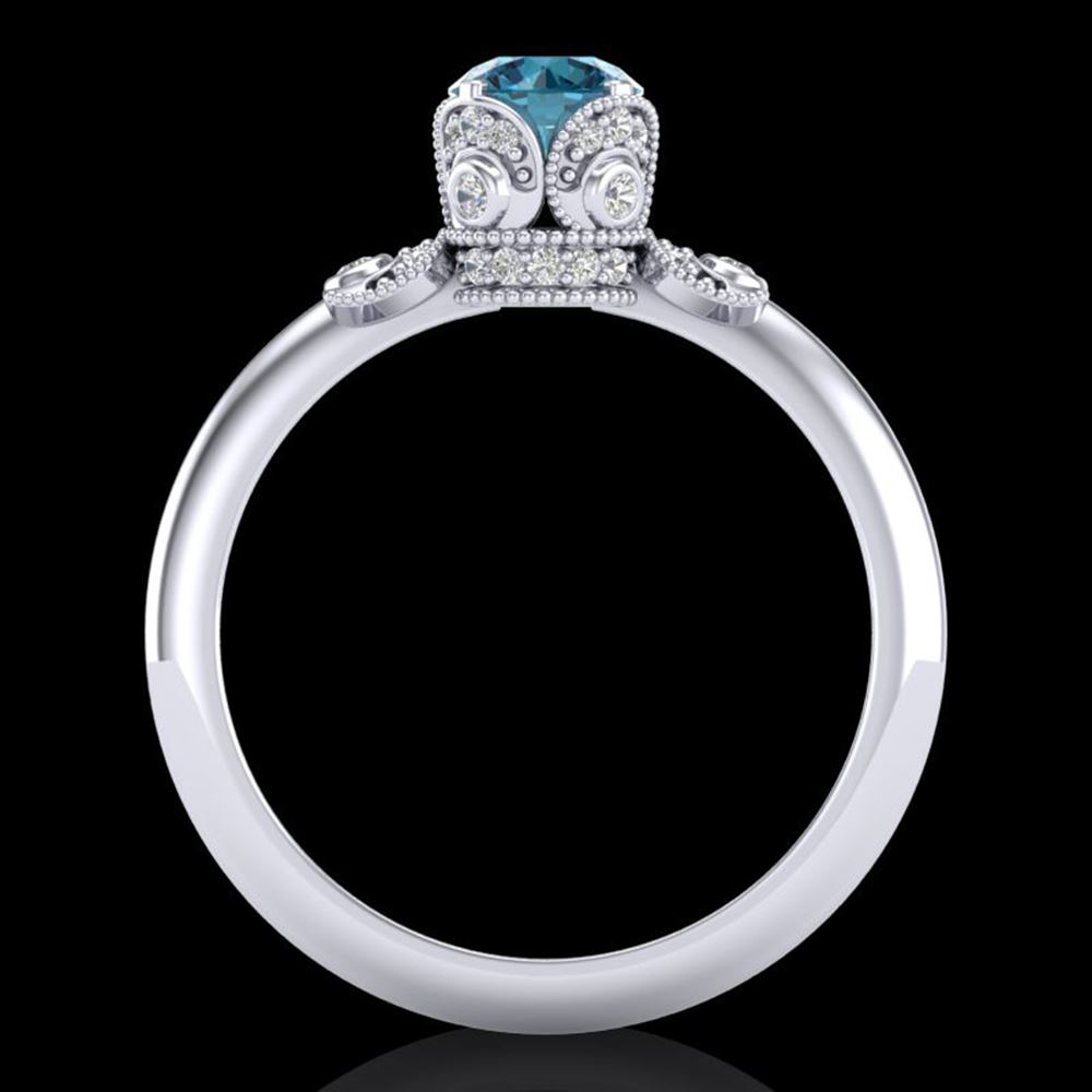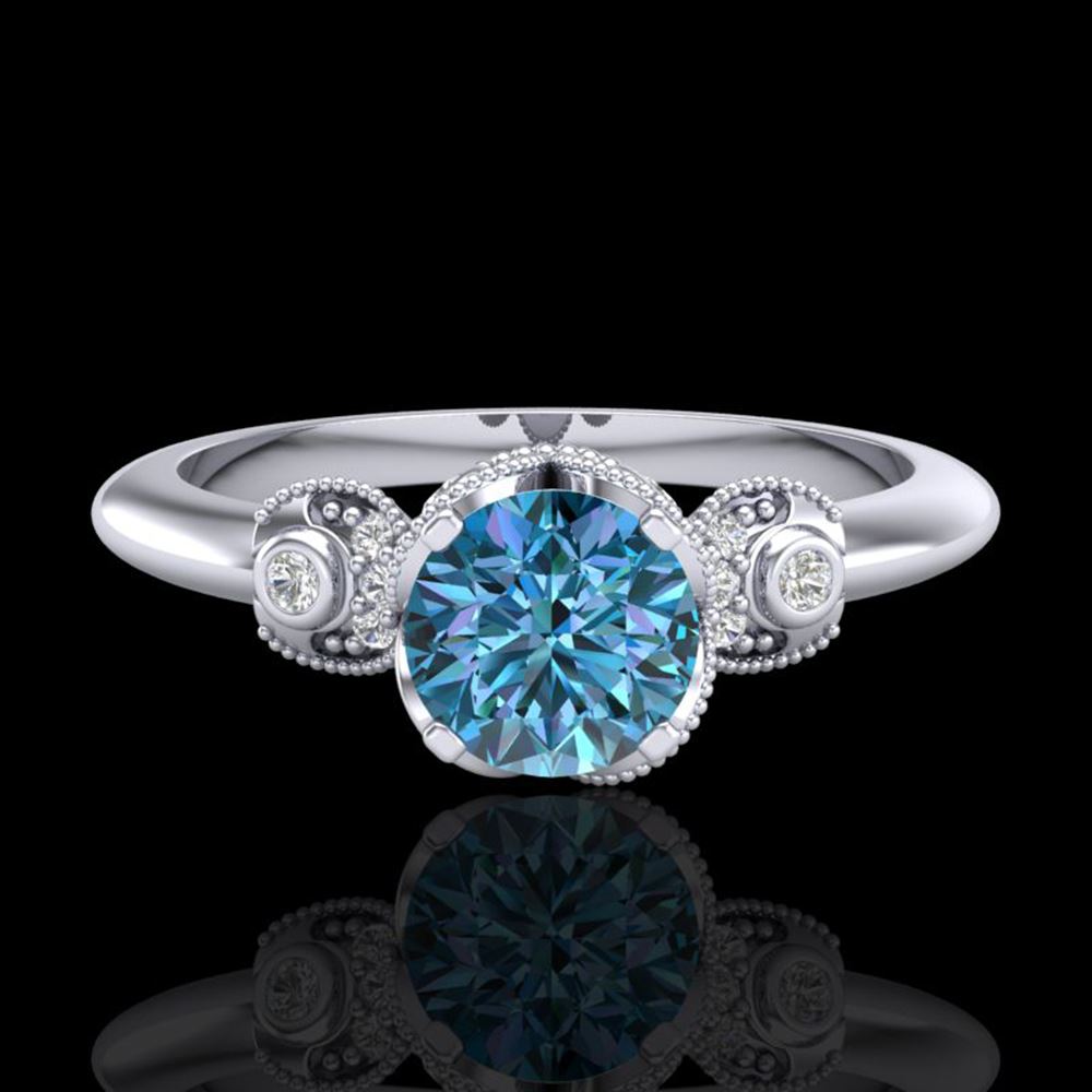 REF-107X3A - SKU: 37397 ---- 1 ctw Intense Blue Diamond Engagment Art Deco Ring 18k White Gold