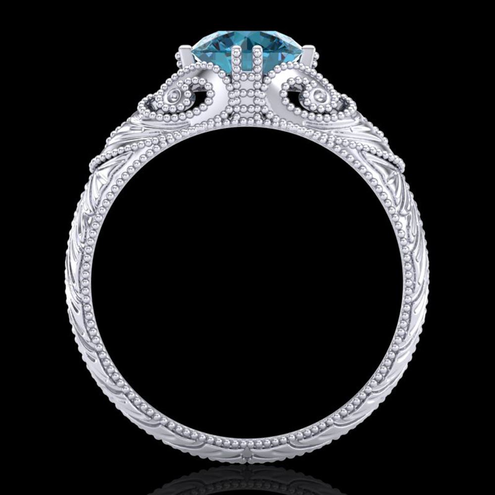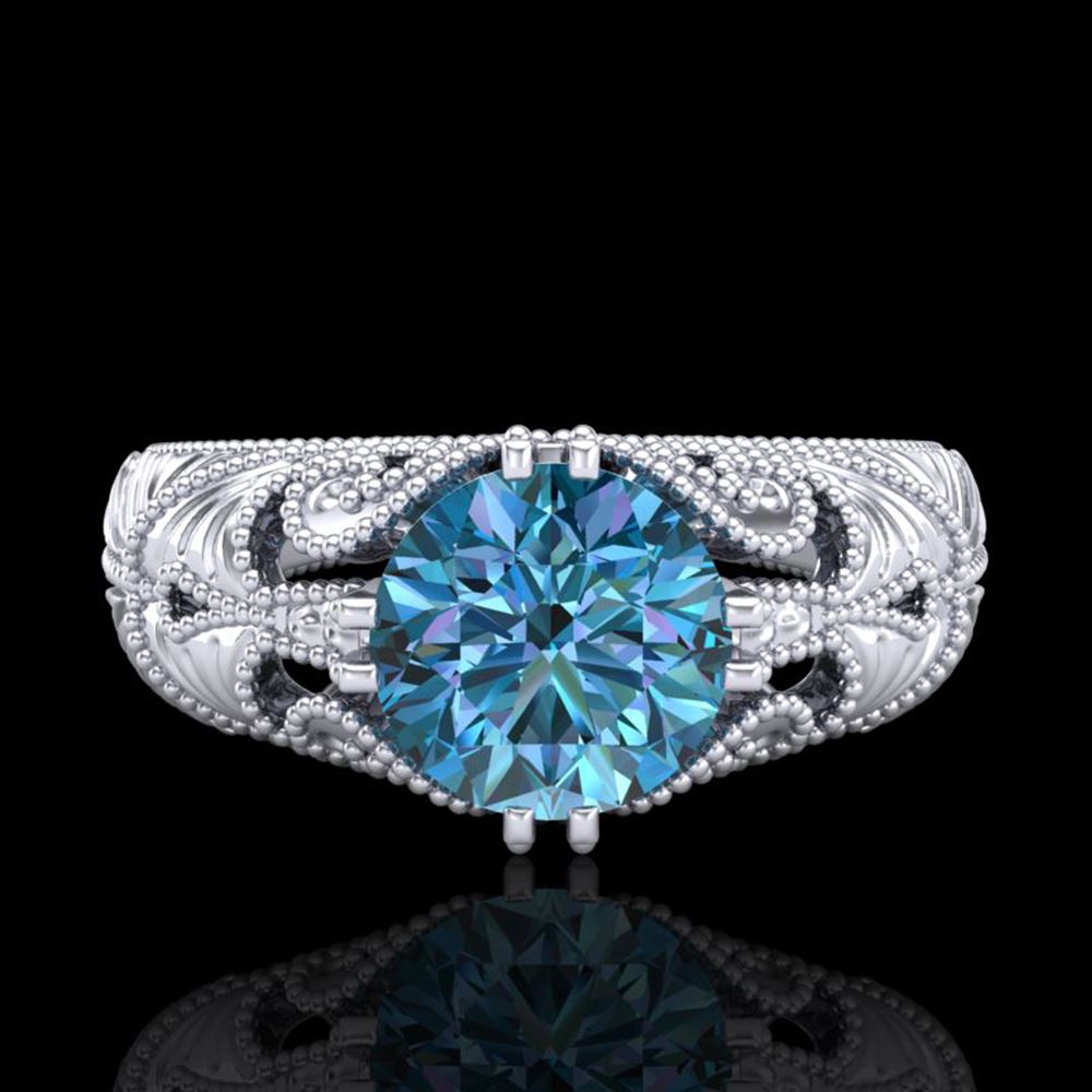 REF-180A2N - SKU: 37530 ---- 1 ctw Intense Blue Diamond Engagment Art Deco Ring 18k White Gold