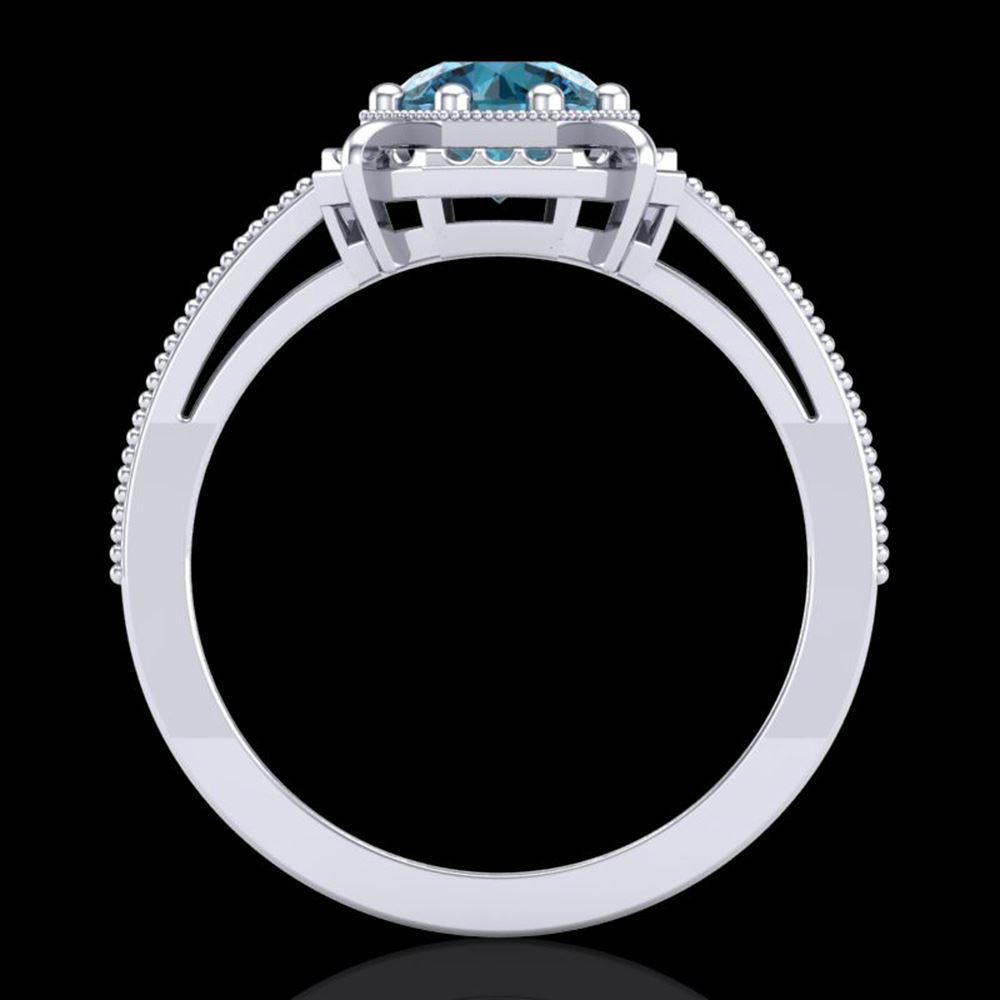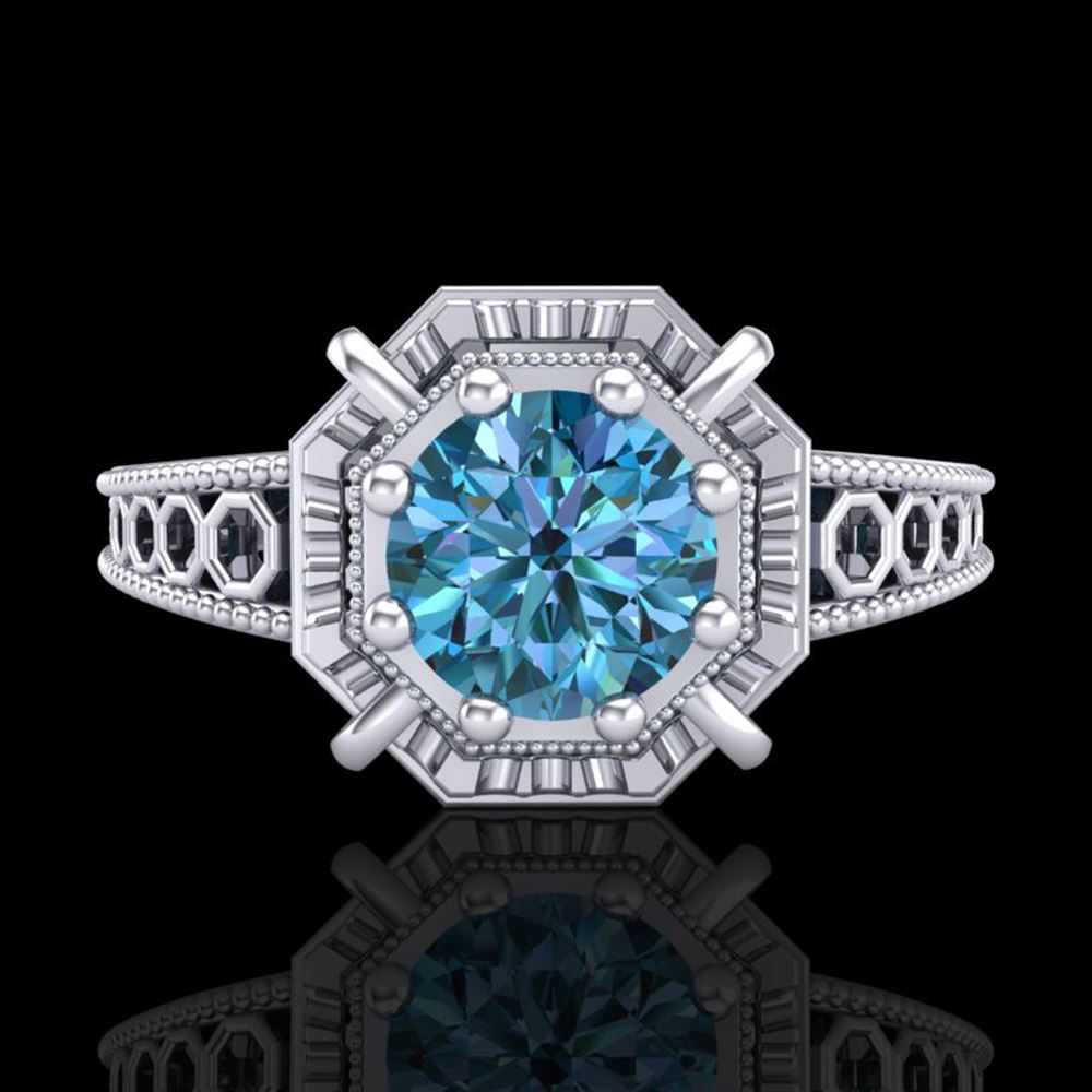 SKU: 37446 ---- 1 ctw Intense Blue Diamond Engagment Art Deco Ring 18k White Gold