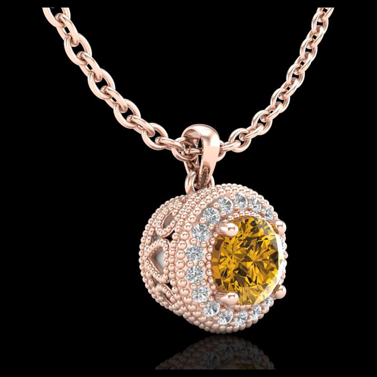 1 ctw Intense Fancy Yellow Diamond Art Deco Necklace 18K Rose Gold