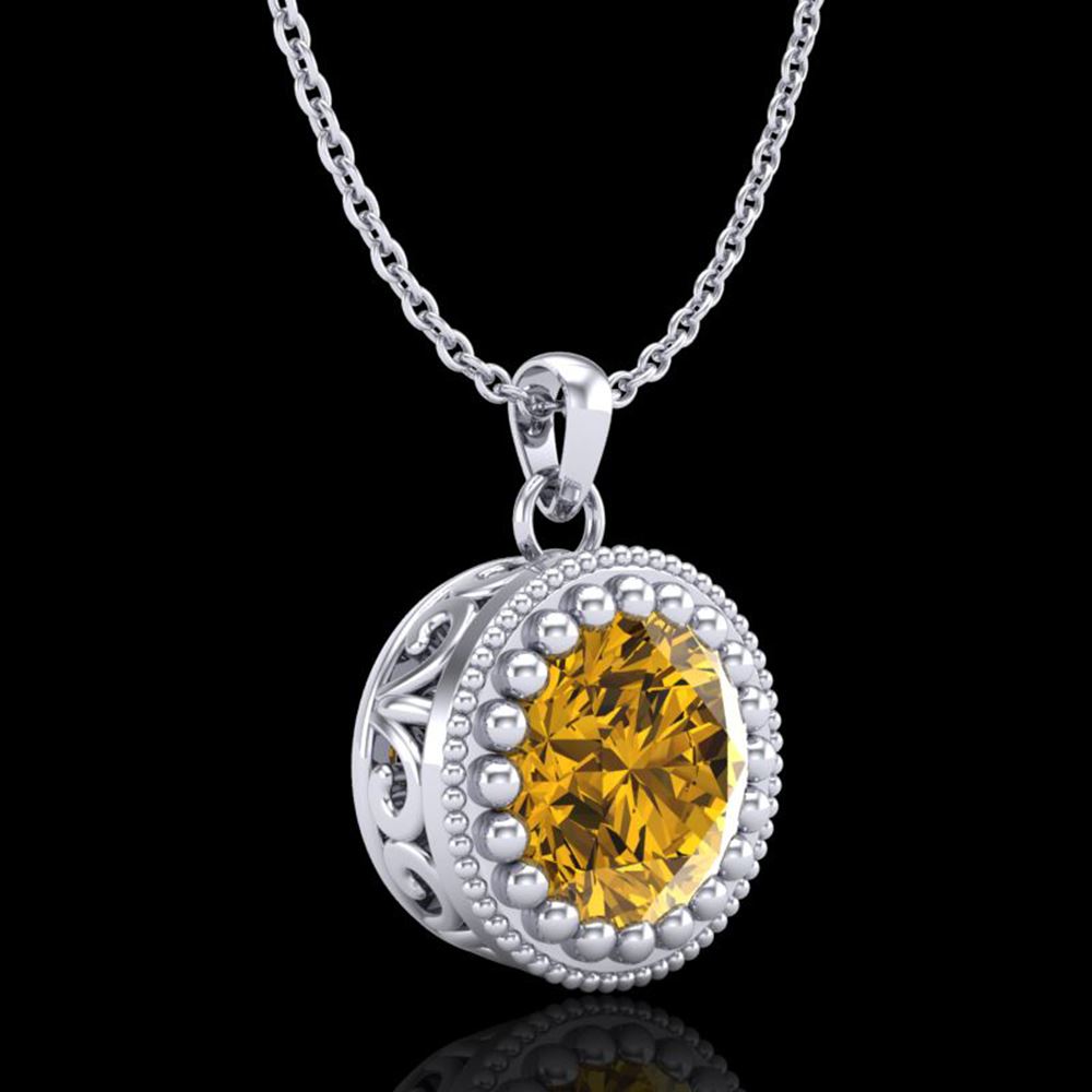 REF-245F5M - SKU: 37490 ---- 1 ctw Intense Fancy Yellow Diamond Art Deco Necklace 18k White Gold
