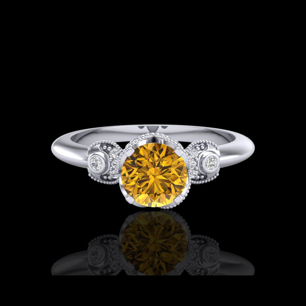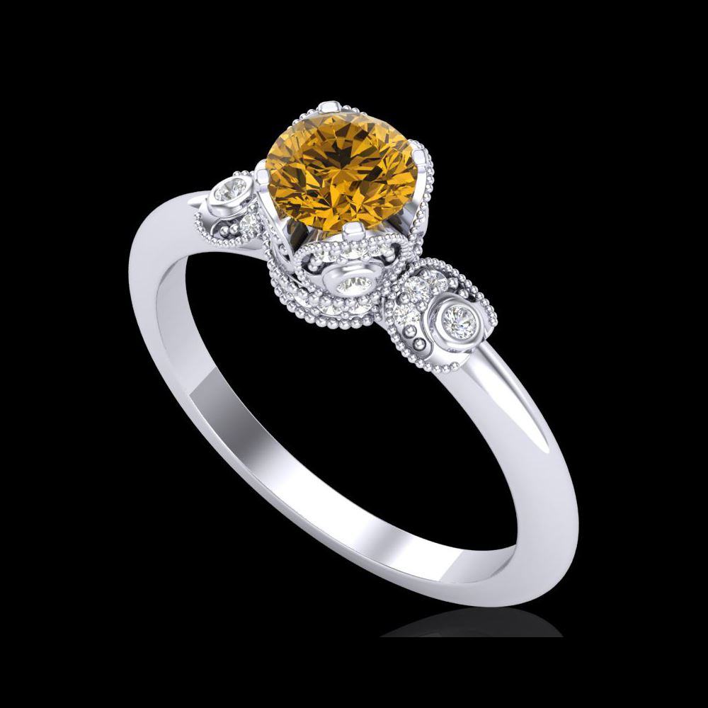1 ctw Intense Fancy Yellow Diamond Art Deco Ring 18K White Gold