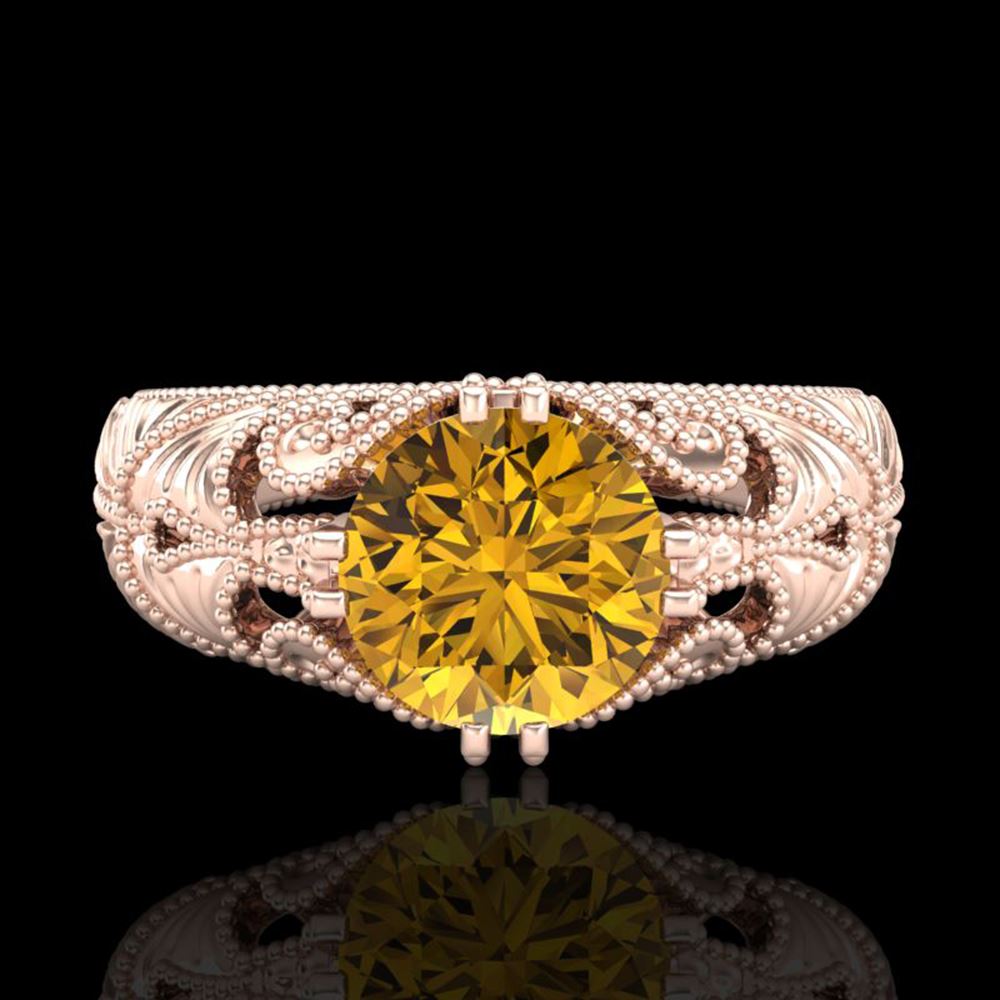 SKU: 37533 ---- 1 ctw Intense Fancy Yellow Diamond Art Deco Ring 18k Rose Gold
