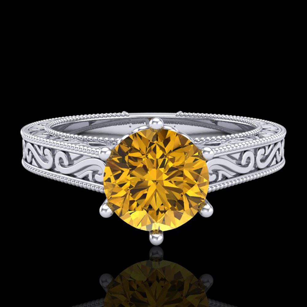 REF-236K4Y - SKU: 37574 ---- 1 ctw Intense Fancy Yellow Diamond Art Deco Ring 18k White Gold