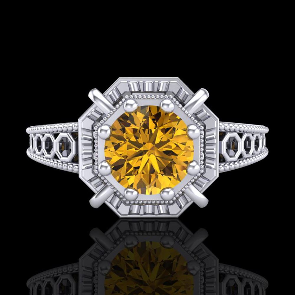 SKU: 37448 ---- 1 ctw Intense Fancy Yellow Diamond Art Deco Ring 18k White Gold