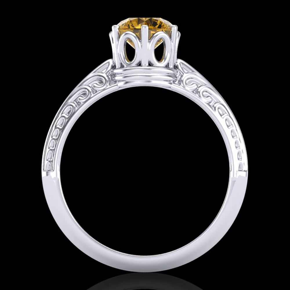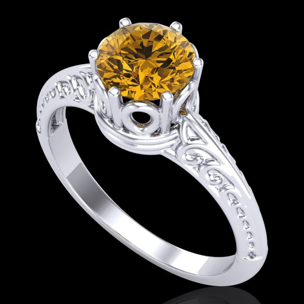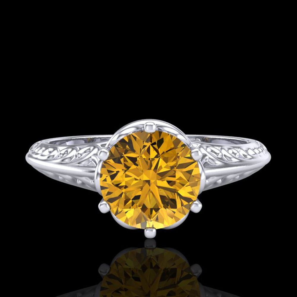 SKU: 38120 ---- 1 ctw Intense Yellow Diamond Engagment Art Deco Ring 18k White Gold