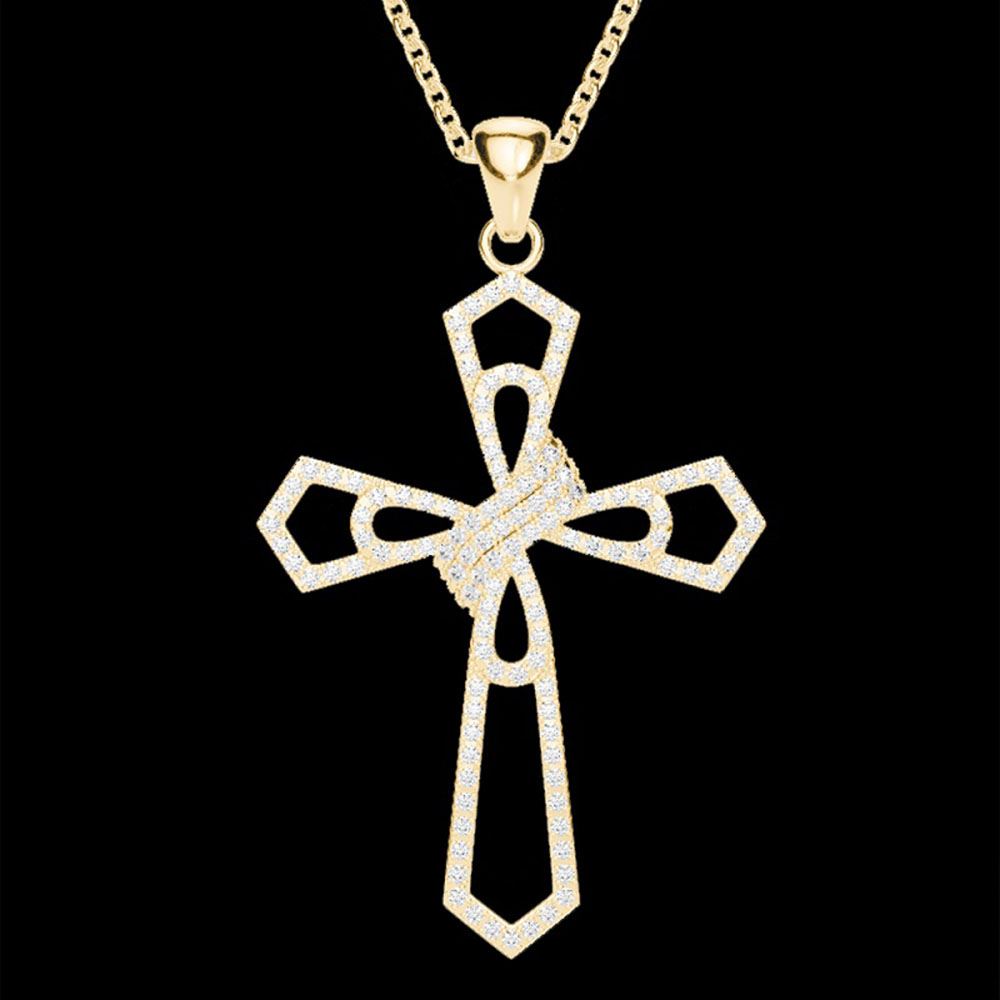 REF-118M2G - SKU: 22579 ---- 1 ctw Micro Pave VS/SI Diamond Cross Necklace 18k Yellow Gold