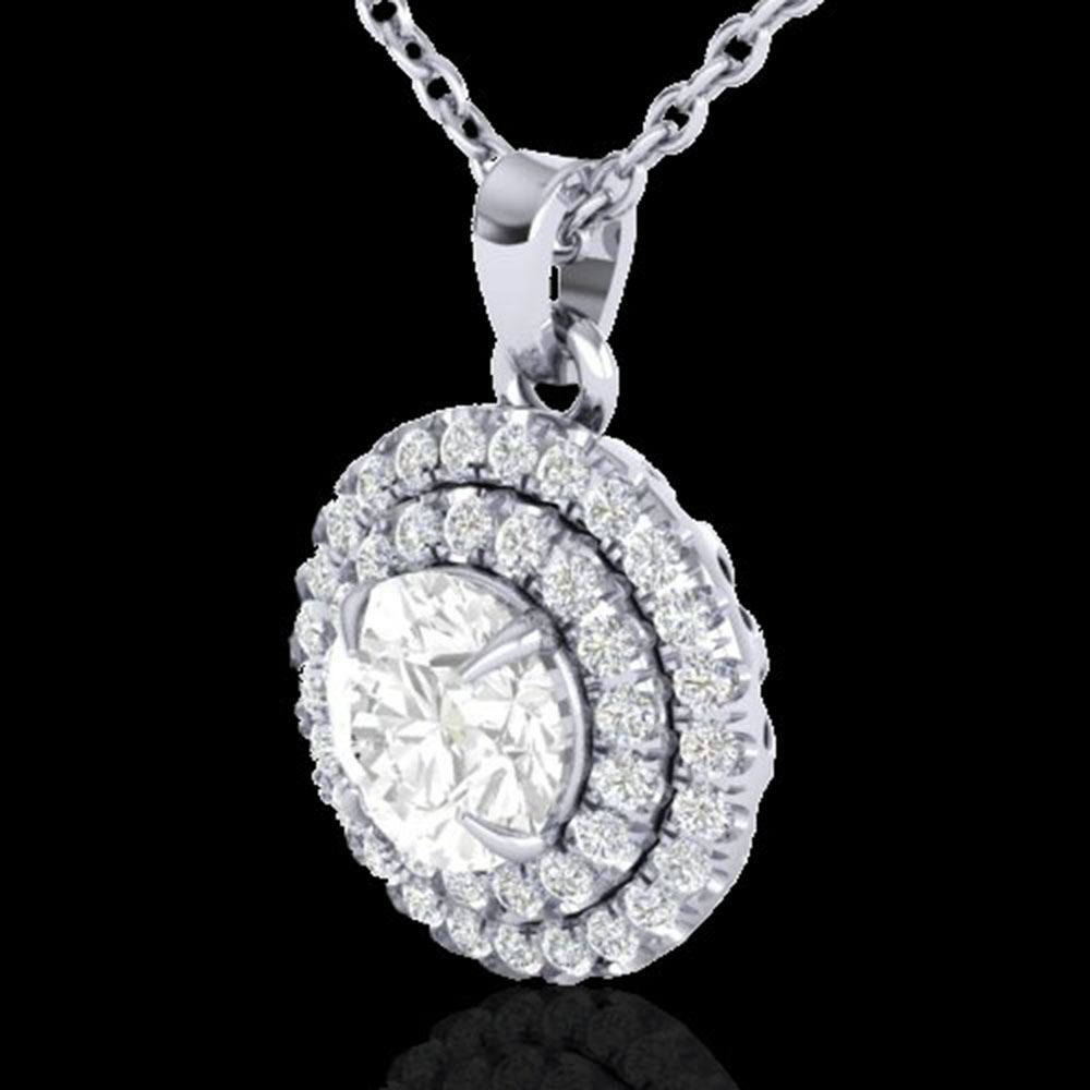 REF-160F2M - SKU: 21542 ---- 1 ctw Micro Pave VS/SI Diamond Solitaire NECKALCE Halo 18k White Gold