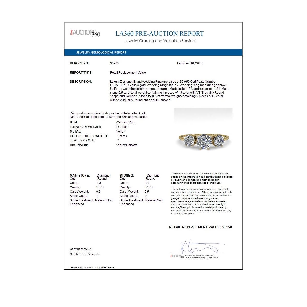 REF-129R9K - SKU: 35905 ---- 1 ctw Past Present Future Certified VS/SI Diamond Ring 18k Yellow Gold