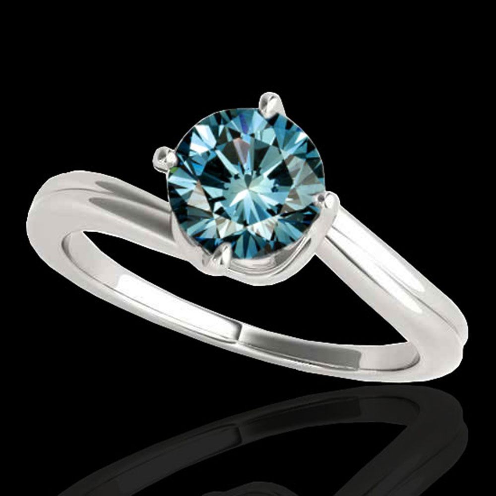 REF-105G8W - SKU: 35034 ---- 1 ctw SI Certified Fancy Blue Diamond Bypass Solitaire Ring 10k White Gold