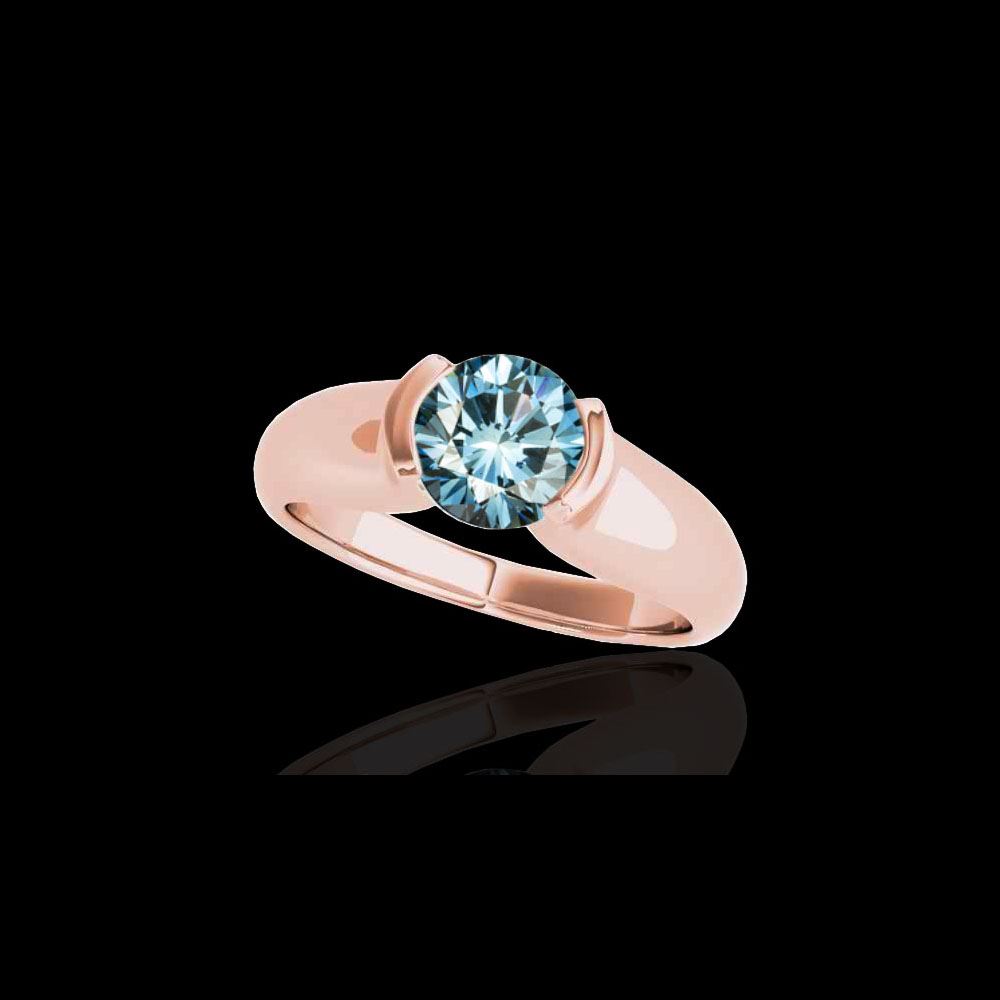 1 ctw SI Certified Fancy Blue Diamond Solitaire Ring 10K Rose Gold