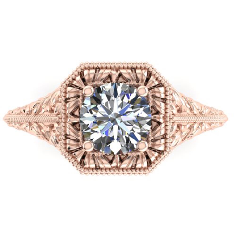 REF-307M2G - SKU: 38527 ---- 1 ctw Solitaire Certified VS/SI Diamond Ring Art Deco 14k Rose Gold