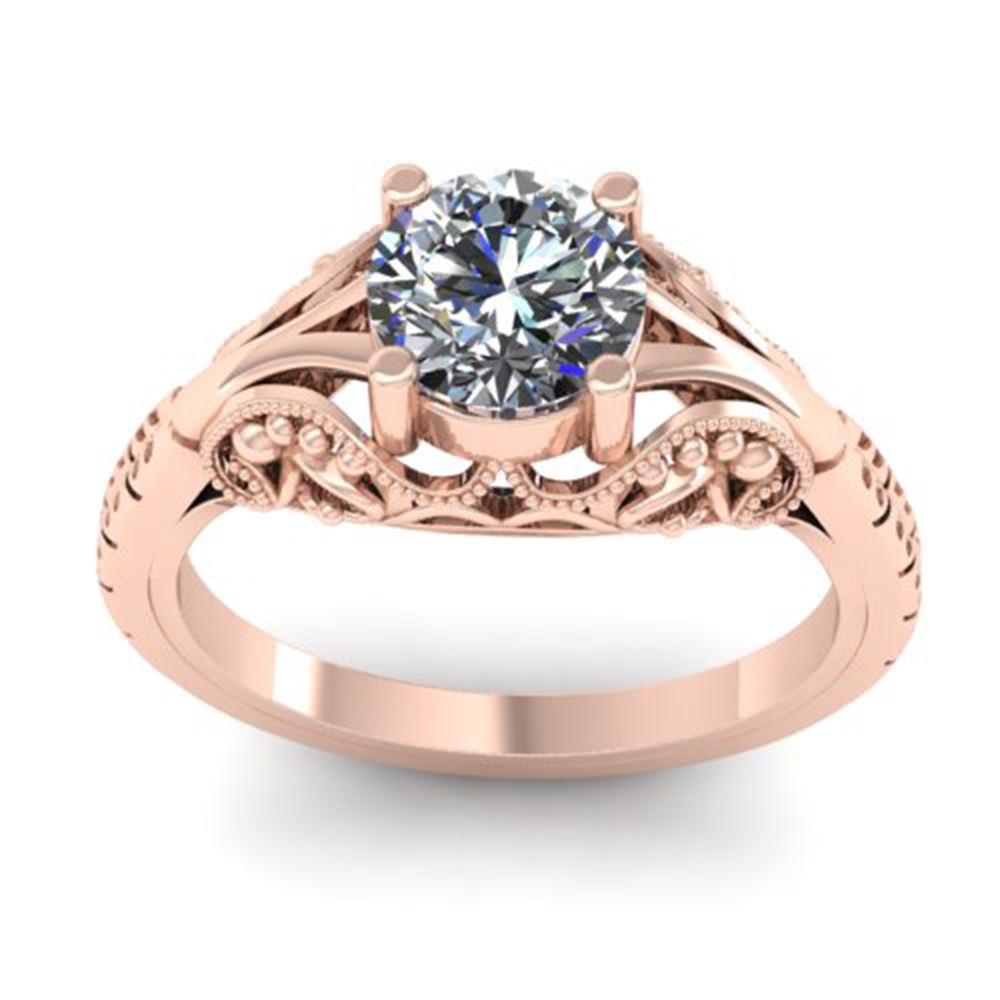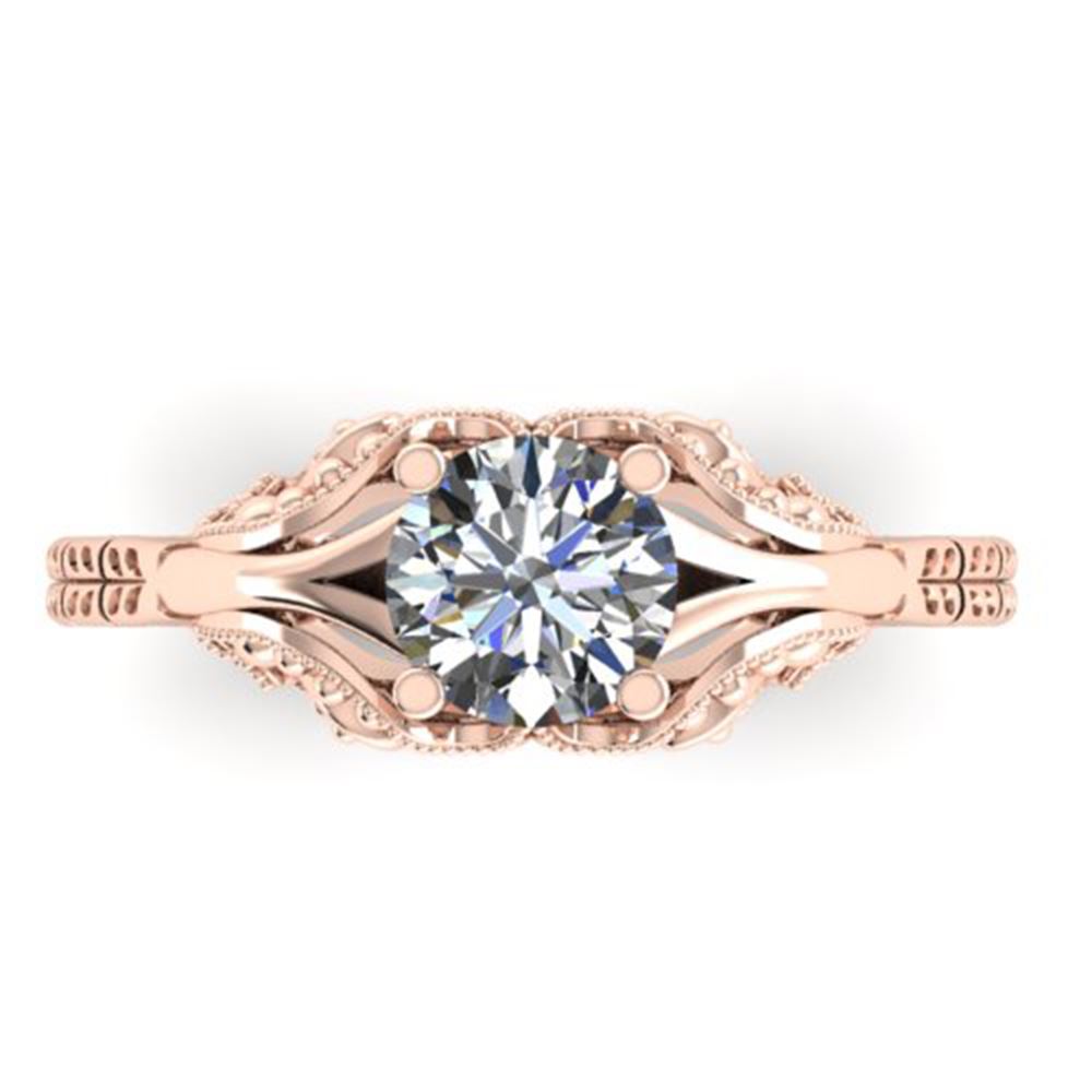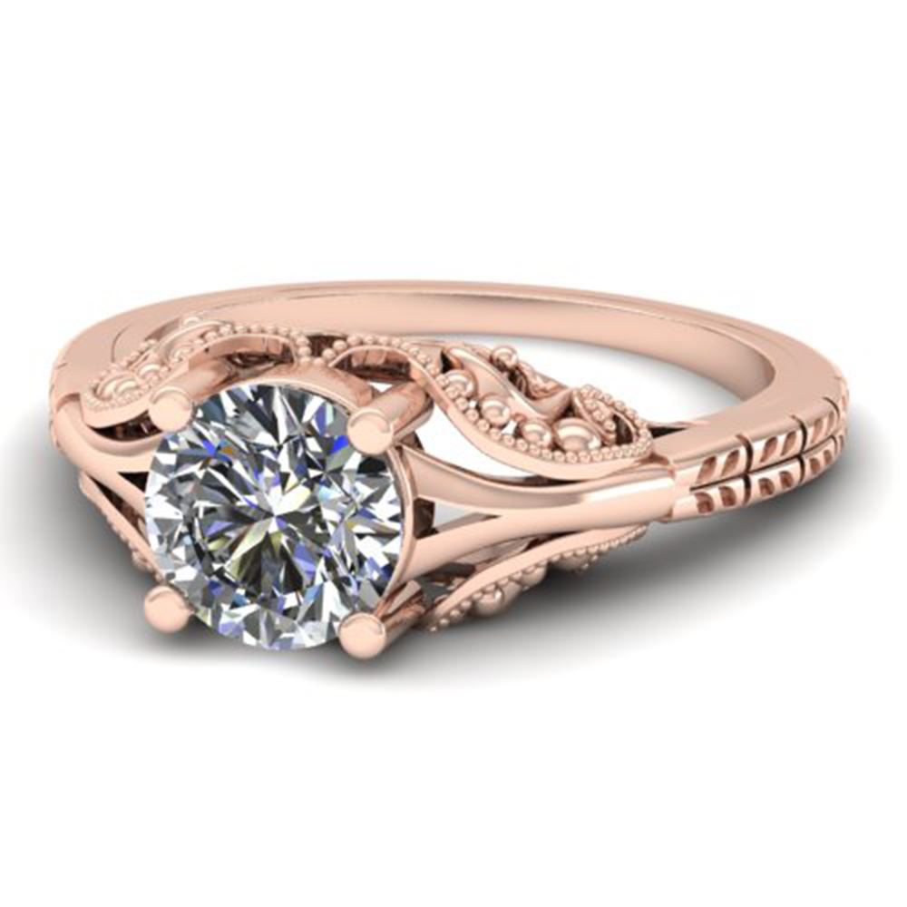 REF-307Y2X - SKU: 38539 ---- 1 ctw Solitaire Certified VS/SI Diamond Ring Art Deco 14k Rose Gold