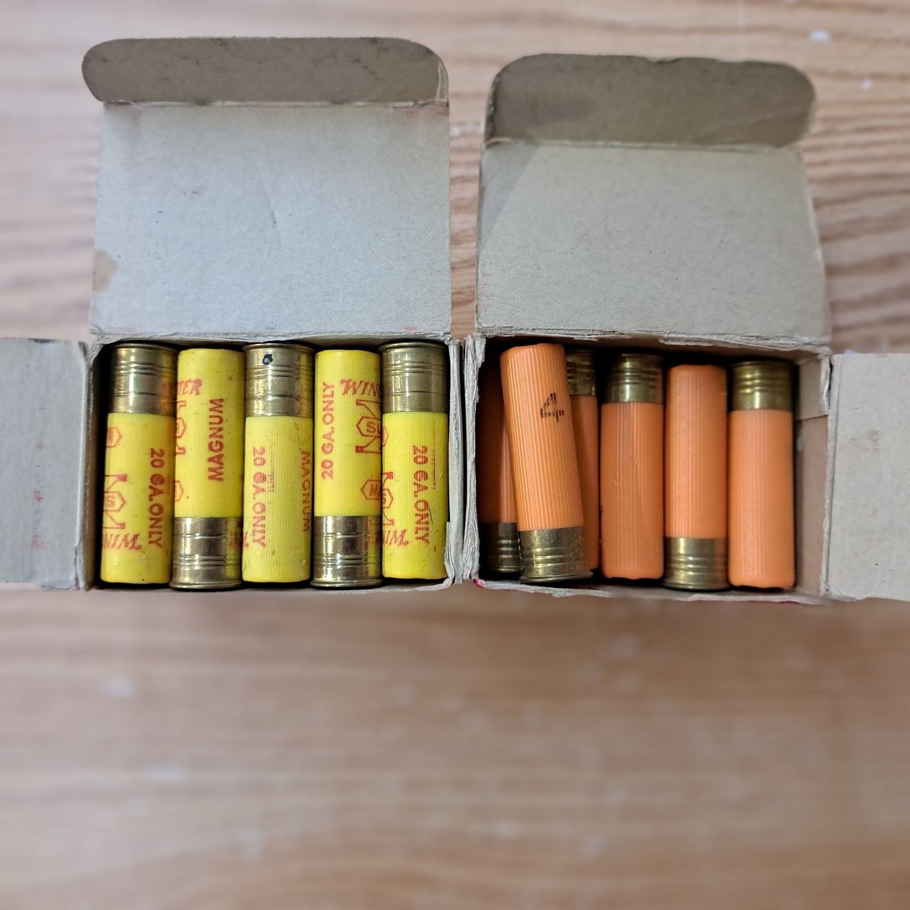 1 full box of 20 gauge shells and 1 almost full box of 20 gauge shells