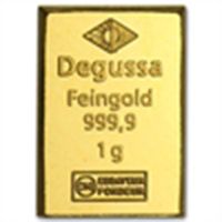 1 gram Degussa Gold Bar (No Assay) .9999 Fine **|**|** 1 gram Degussa Gold Bar (No Assay) .9999 Fine ; MSRP: $0