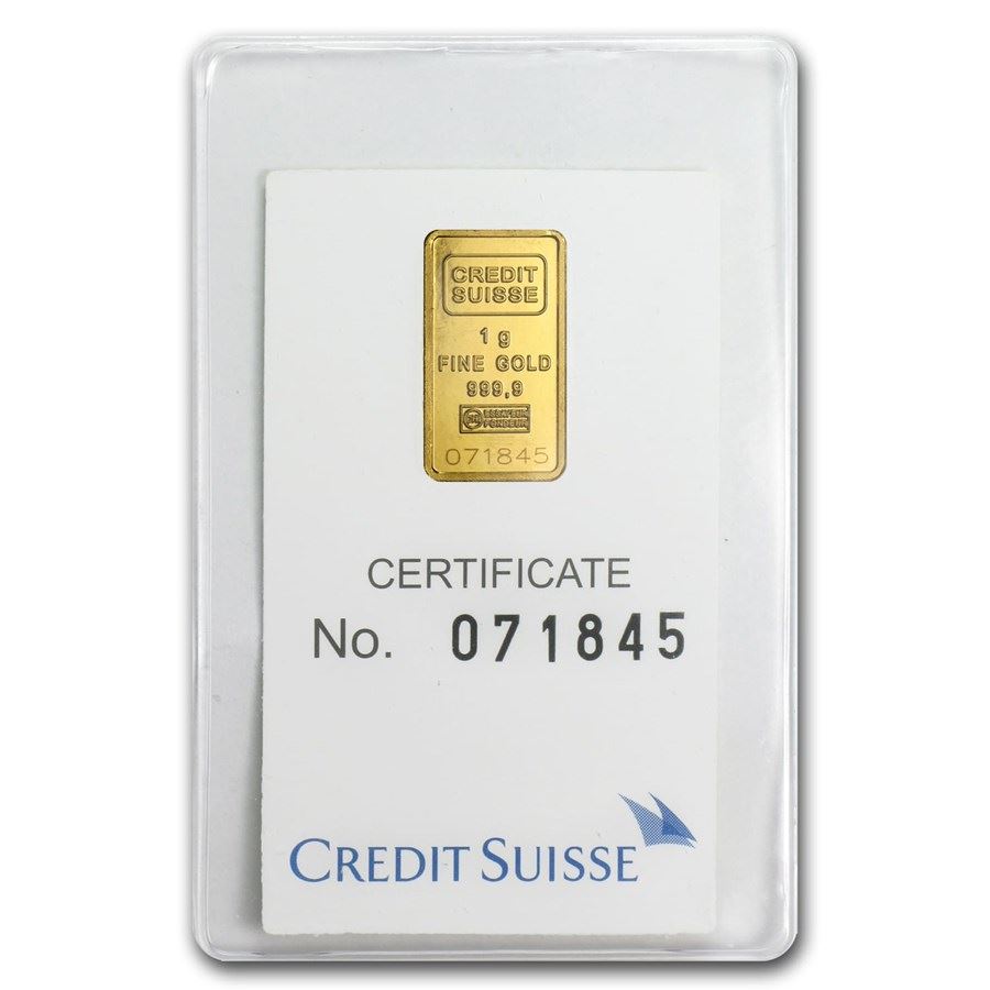 1 gram Gold Bar - Credit Suisse Statue of Liberty (In Assay)