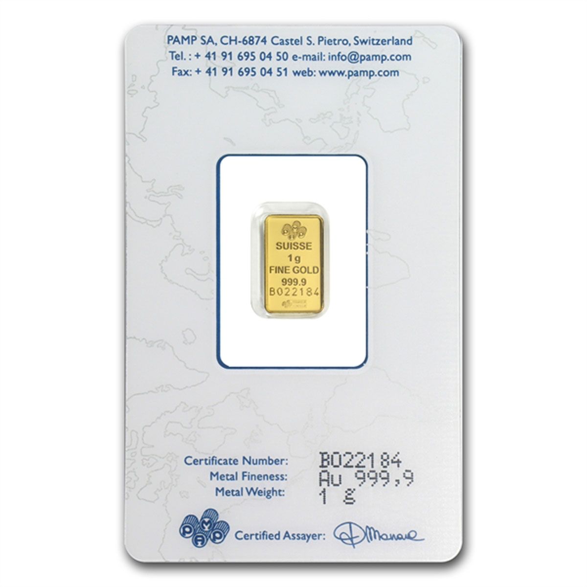 1 gram Pamp Suisse Gold Bar .9999 Fine (In Assay)
