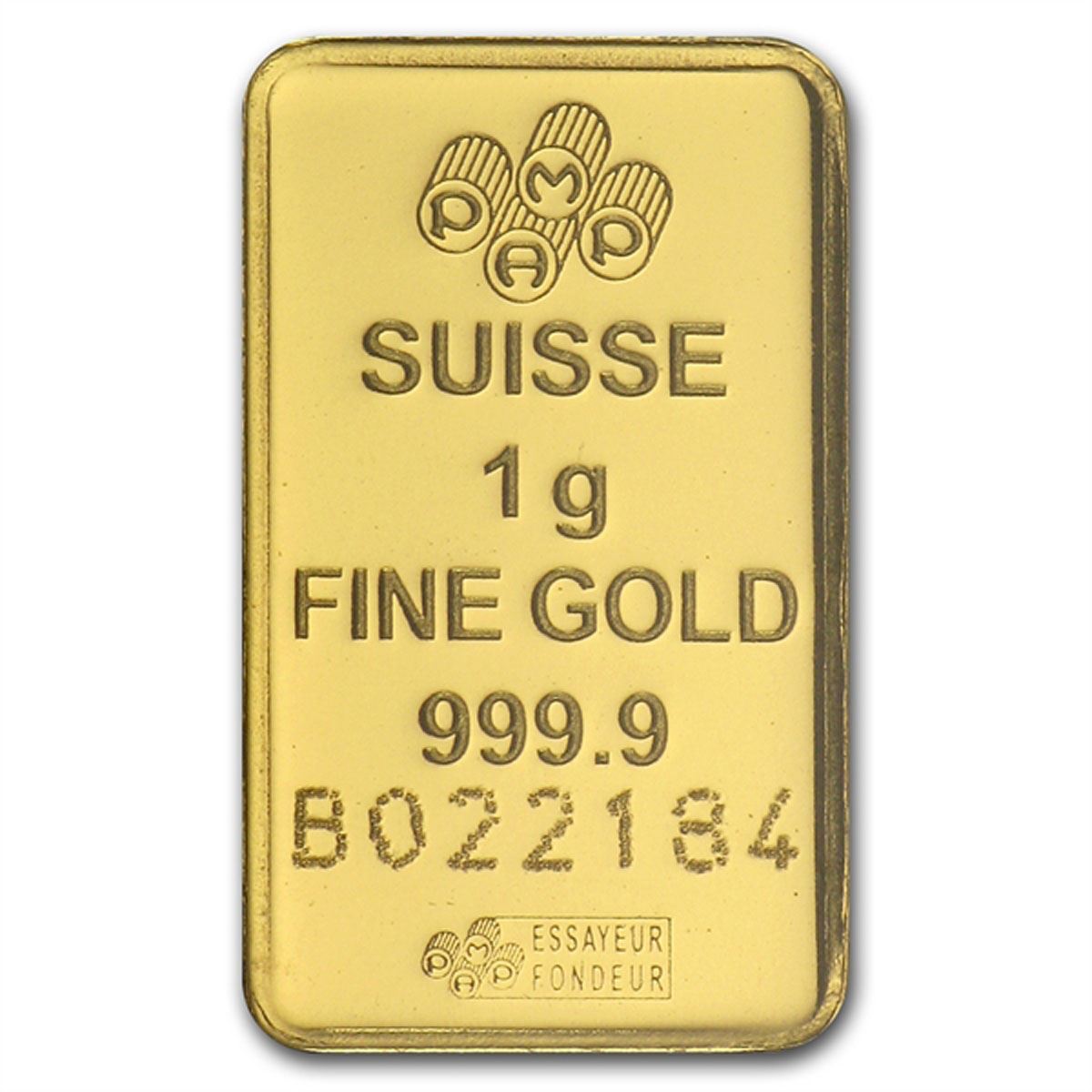 1 gram Pamp Suisse Gold Bar .9999 Fine (In Assay)