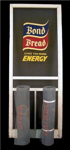1 lot, 3 screen door pieces 1 door "Bond Bread" and 2 N.O.S. replacement screens (Rain-bo) bread