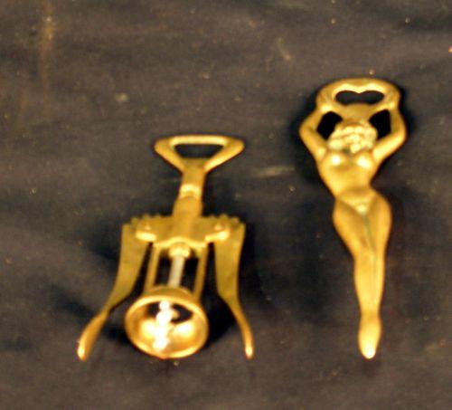 1 lot of 2 Brass openers...One brass "Nude" opener and a brass wine bottle opener