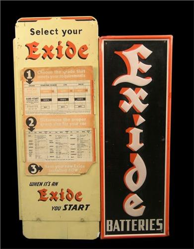 1 lot of 2 "Exide" Battery tin signs 1-14"x40", 1- 17"x44"