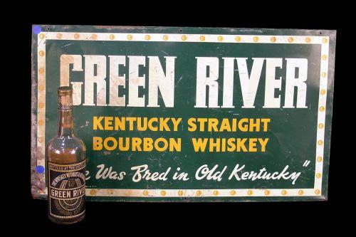 1 lot of 2 "Green River" items Tin sign and an original bottle of Green River Whiskey