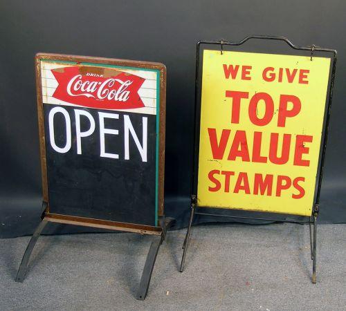 1 lot of 2 early sidewalk signs "Coca-Cola" menu board and a "Top Value" sign