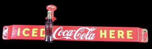 1 lot of 2, screen door, "Coca-Cola" items a porcelain push bar and a plastic coke bottle handle