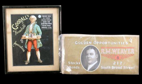 1 lot of 2 signs: "Goodalls" & "R. M. Weaver" 16 x 19" and 11 x 21 "