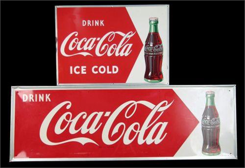 1 lot of 2 tin, "Coca-Cola" signs "Drink Coca-Cola" 1953 54 x 18" and a 1952 sign 19 x 27"