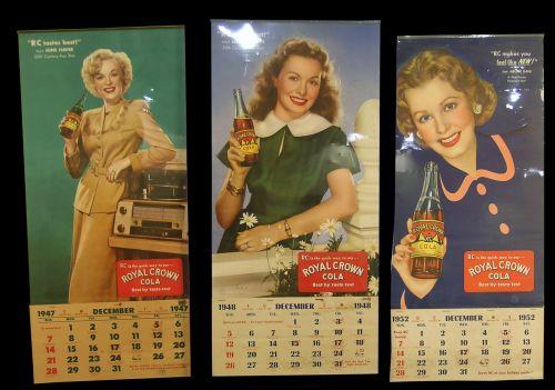 1 lot of 3, "Royal Crown Cola" calendars 1948....1949....1953 12 x 25" with full pads '48 is June Haver '49 is Jeanne Crain and '53 is Arlene Dahl
