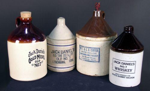 1 lot of 4 large Jack Daniels Whiskey Jugs c.1900