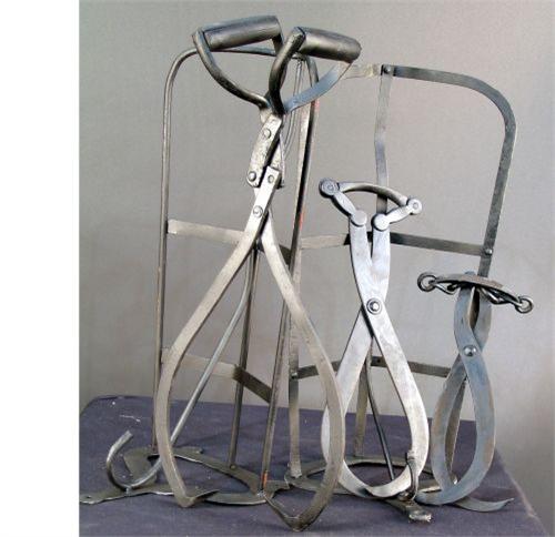 1 lot of 5 pieces.. 3 ice-tongs & 2 early saddle racks