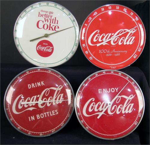 1 lot of 7, Round "Coca-Cola" thermometers all 12" diameter from different years