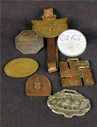 1 lot of 7 misc, Coca-Cola fobs and tokens