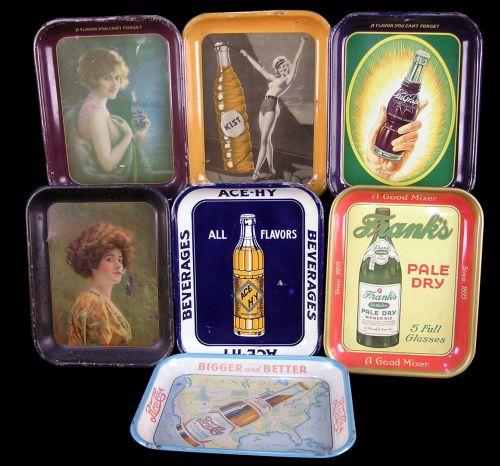1 lot of 7 misc rectangular trays all original and 10 x 13" "Frank's" ginger ale, Ace-Hy, 2 Nu-Grape, Kist, Pepsi and "Jeannette"