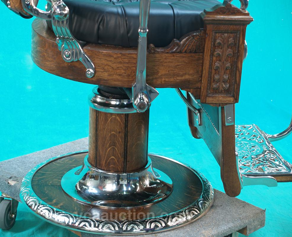 1 of 2 Matching "Koken" Oak Barber Chairs Restored in Nickel Plating and Genuine Black Leather Hard to Find Early Koken Chairs