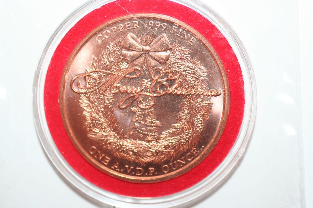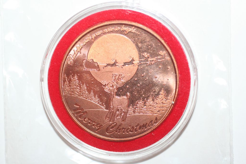 This lot is a 1 oz. (.999) christmas copper round; rudolph