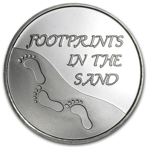 1 oz Footprints in the Sand Silver Round - Plain(w/Box **|**|** 1 oz Footprints in the Sand Silver Round - Plain(w/Box & Capsule) ; MSRP: $100