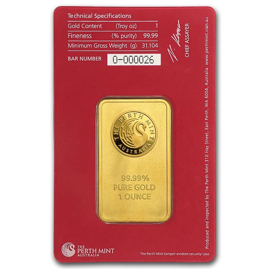 1 oz Gold Bar - The Perth Mint Oriana Design (In Assay)