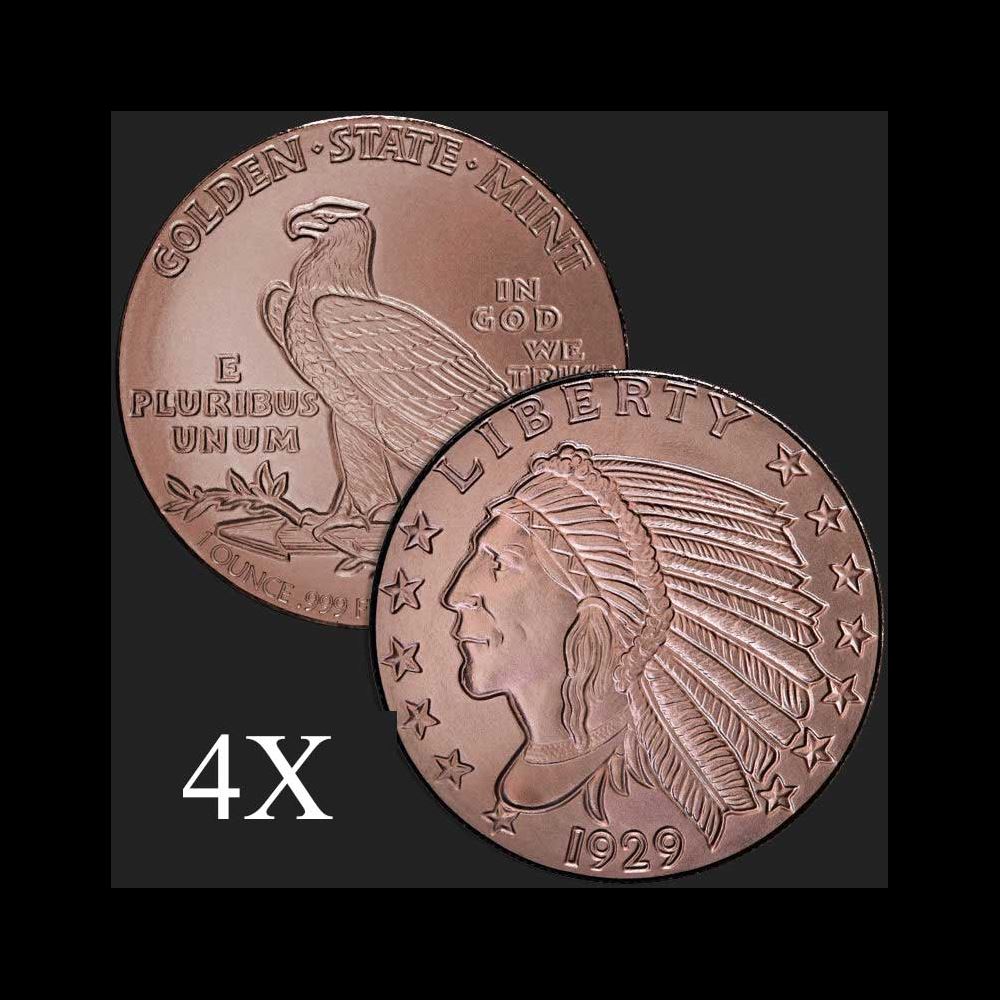 4 units of 1 oz Incuse Indian .999 Fine Copper Bullion Round