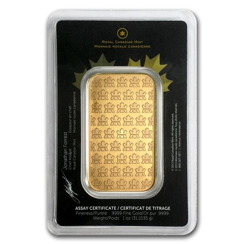 1 oz Royal Canadian Mint RCM Gold Bar .9999 Fine (In As **|**|** 1 oz Royal Canadian Mint RCM Gold Bar .9999 Fine (In Assay) ; MSRP: $6400