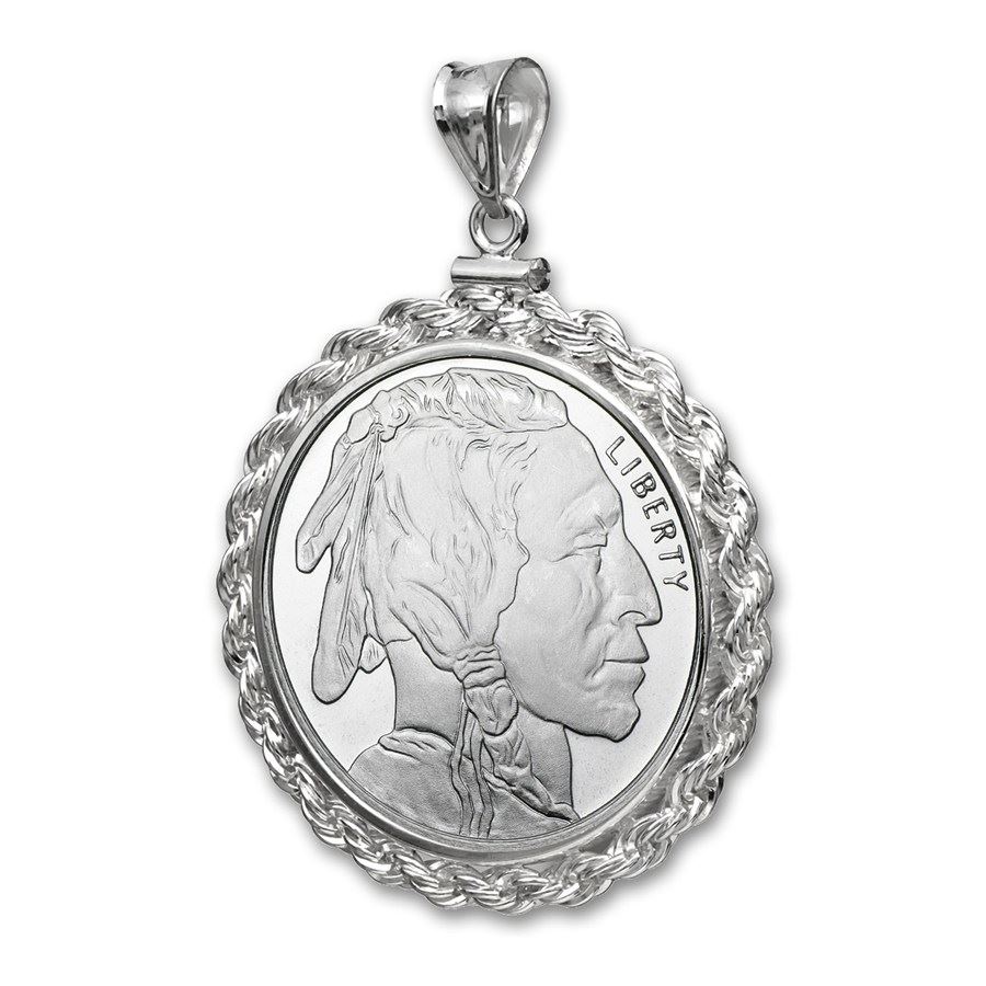 1 oz Silver Buffalo Pendant (Rope-ScrewTop Bezel)