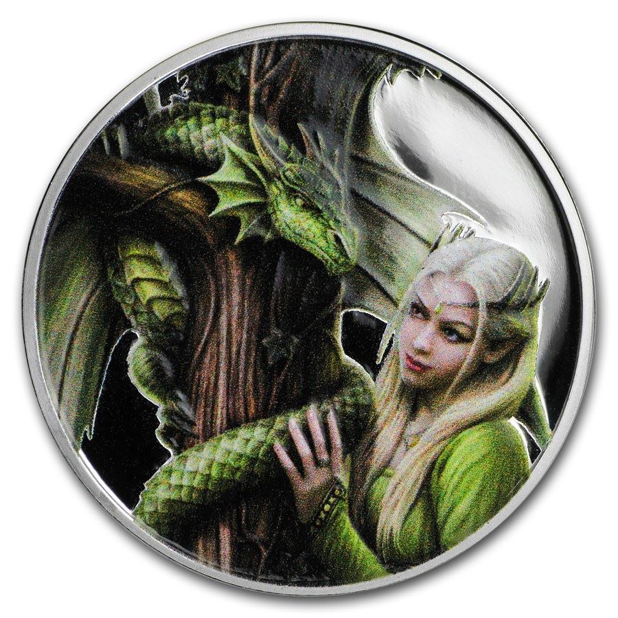 1 oz Silver Colorized Round - Anne Stokes Dragon: Kindred Spirits