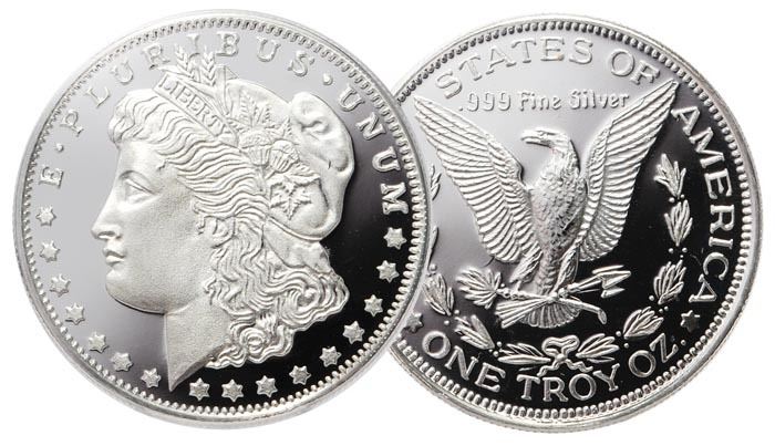 A single1 oz. Silver Morgan design round. -.999 pure-Items are as shown in image, bidder is responsible for grade and value. All terms apply to every bid and lot. Please review the terms PRIOR to placing a bid. Allsales final.