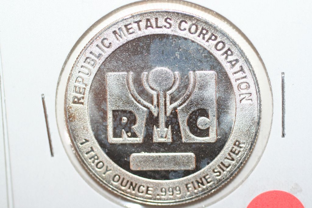 This lot is a 1 oz. (.999) silver round; republic metals corporation
