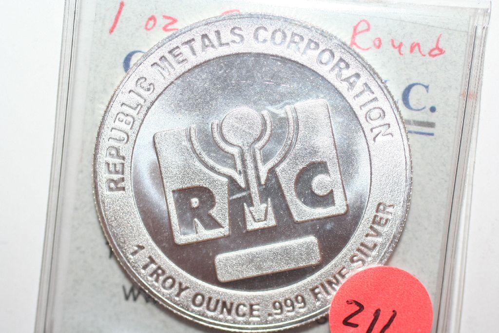 This lot is a 1 oz. (.999) silver round; republic metals corporation