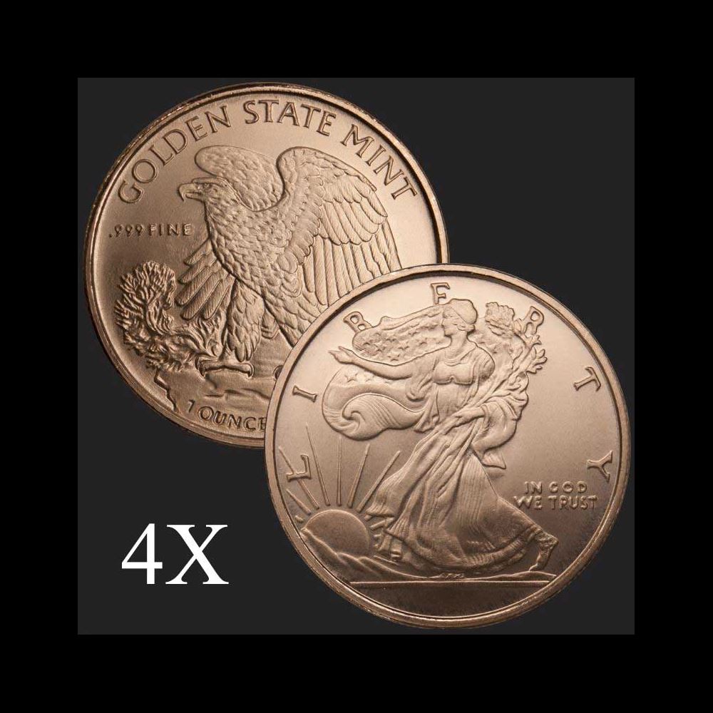 4 units of 1 oz Walking Liberty .999 Fine Copper Bullion Round