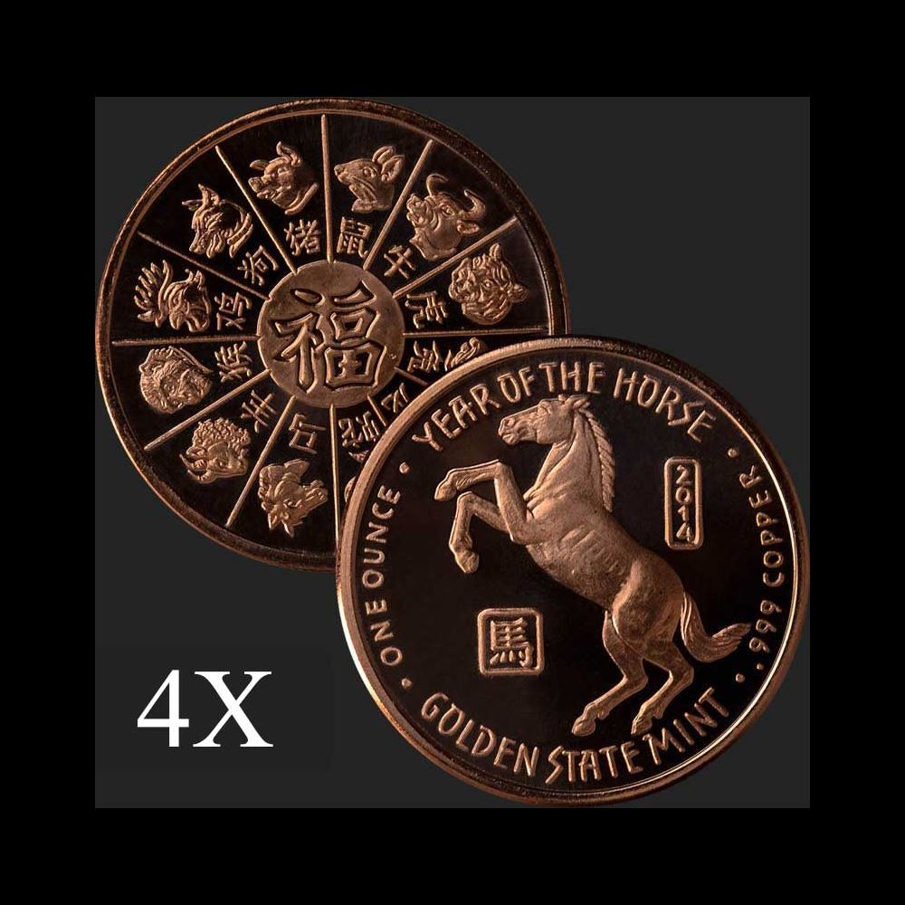 4 units of 1 oz Year of the Horse .999 Fine Copper Bullion Round
