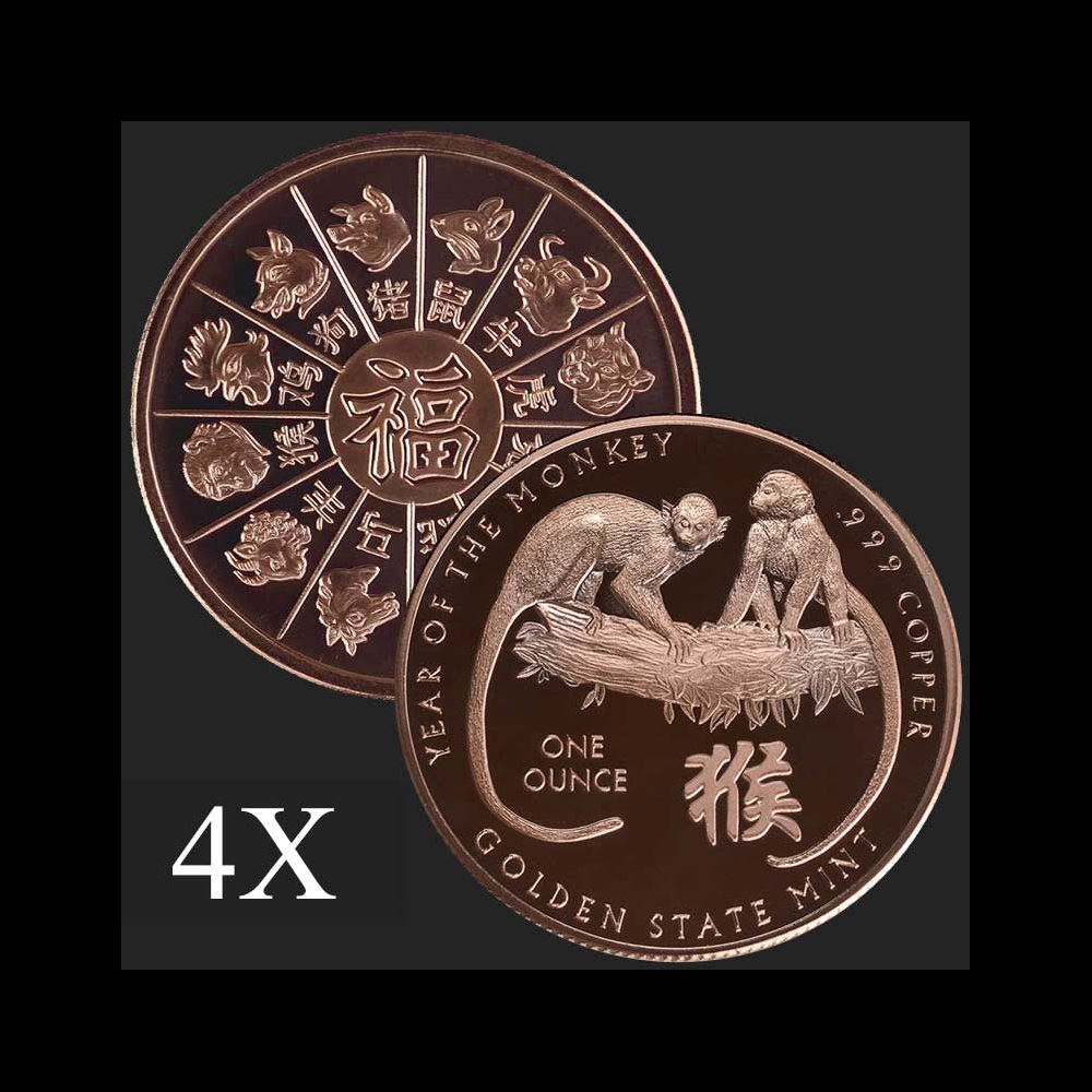 4 units of 1 oz Year of the Monkey .999 Fine Copper Bullion Round
